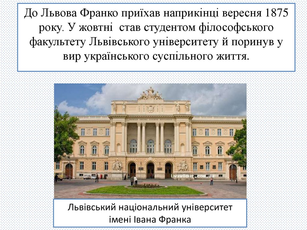 До Львова Франко приїхав наприкінці вересня 1875року. У жовтні став студентом філософського