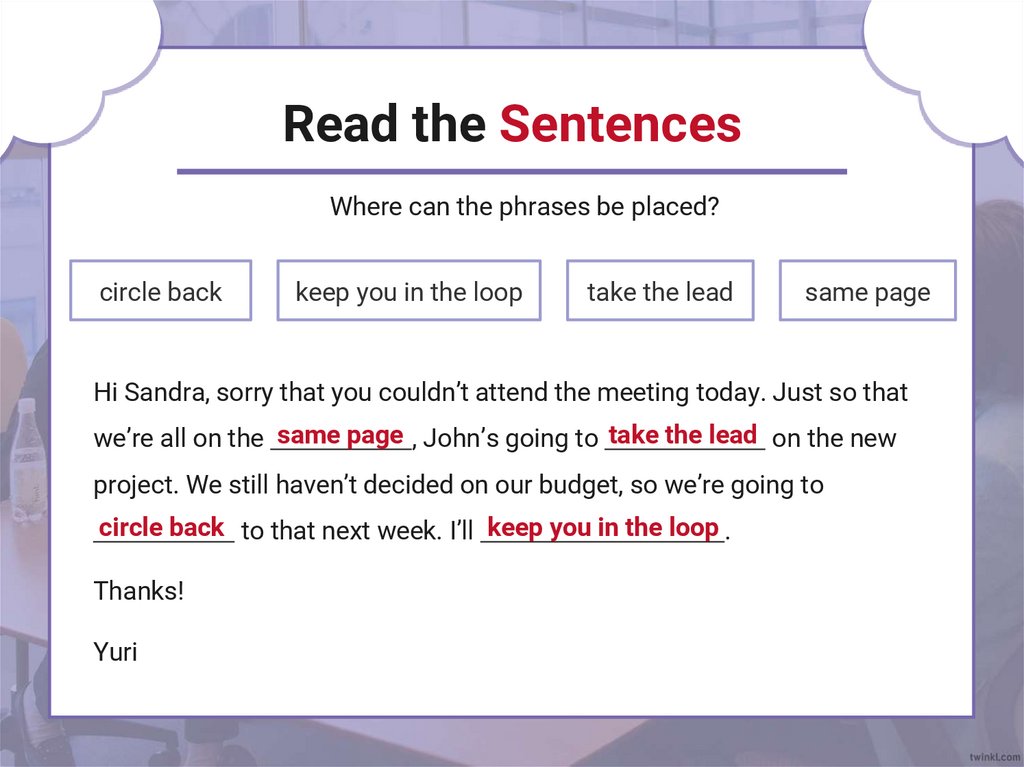 Hi Sandra, sorry that you couldn’t attend the meeting today. Just so that