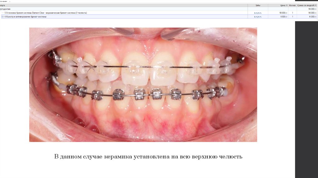 В данном случае керамика установлена на всю верхнюю челюсть18.
