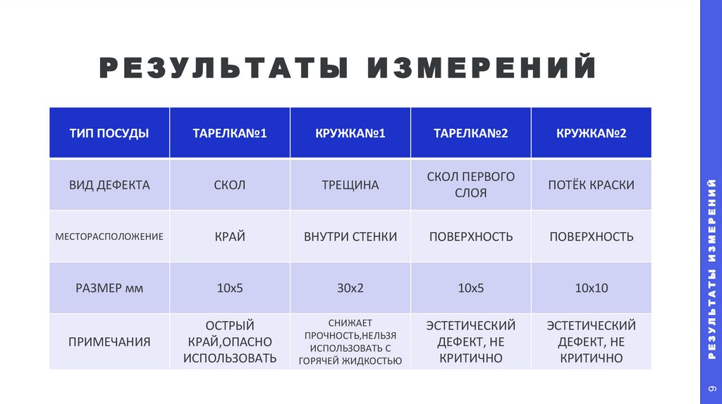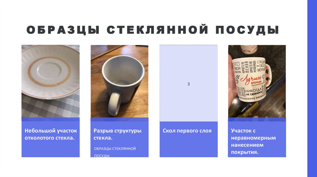 различных дефектов на примере тарелок и кружек. Были