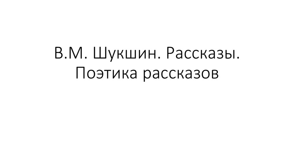 1. В.М. Шукшин. Рассказы. Поэтика рассказов