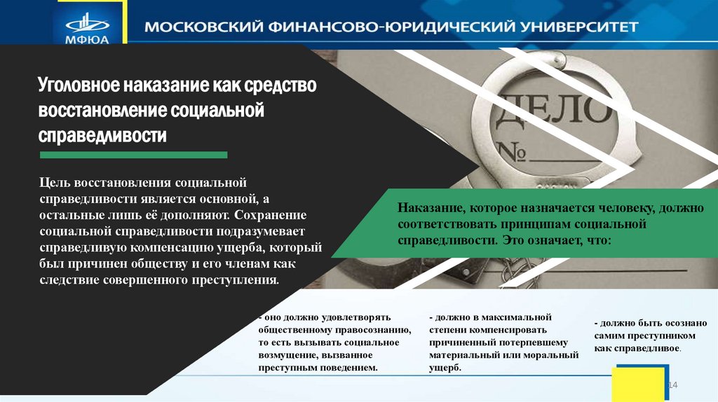 - рассмотрение уголовного наказания как средство восстановление социальной справедливости;