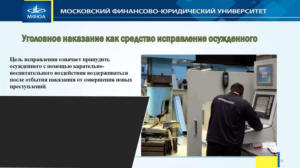 Цель исправления означает принудитьосужденного с помощью карательновоспитательного воздействия воздерживаться