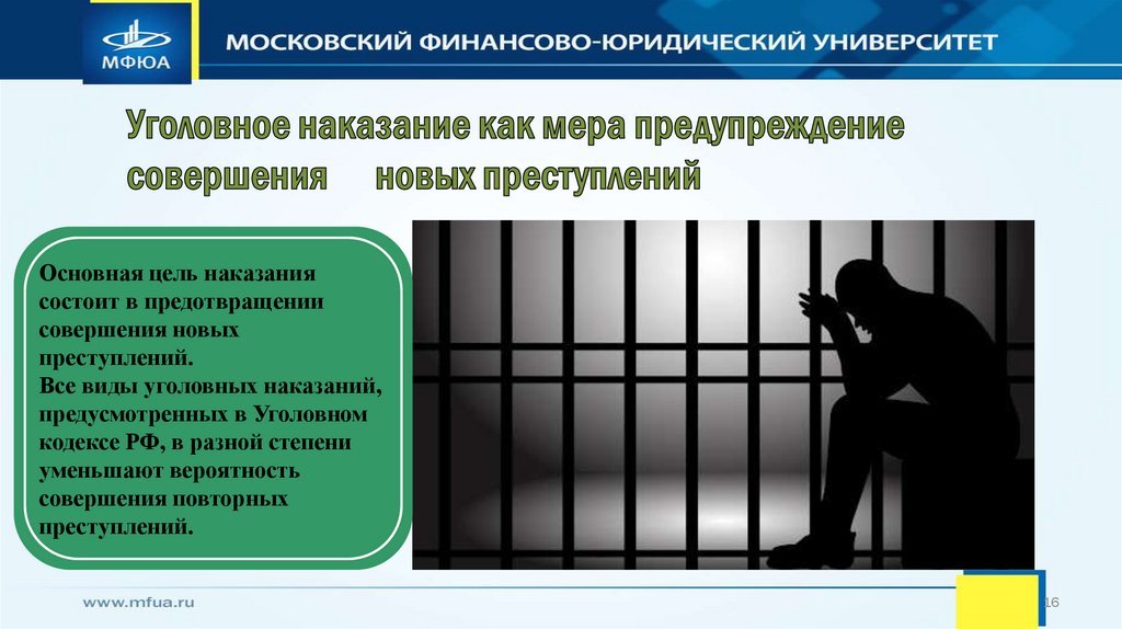 - рассмотрение уголовного наказания как мера предупреждение совершения новых преступлений.