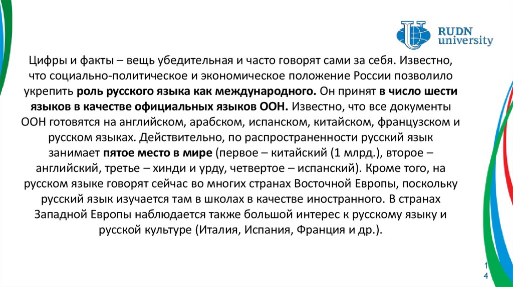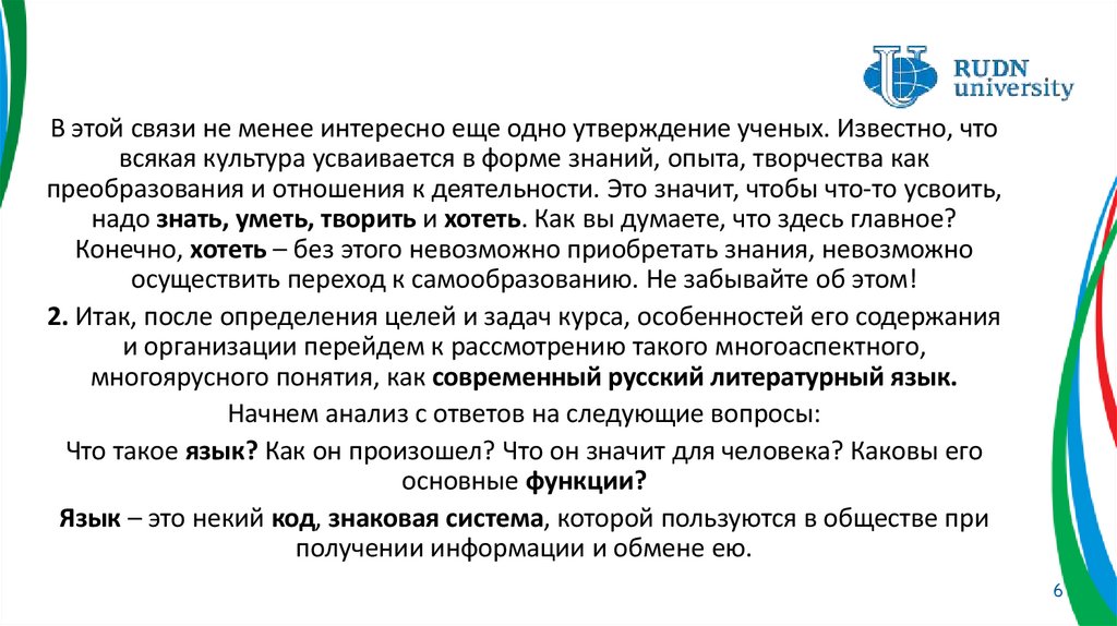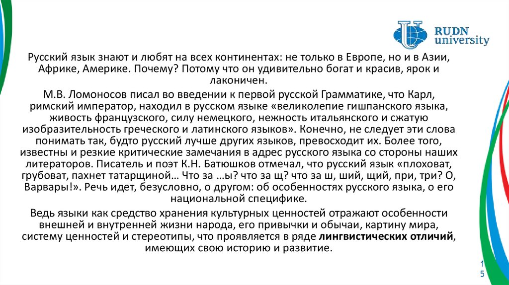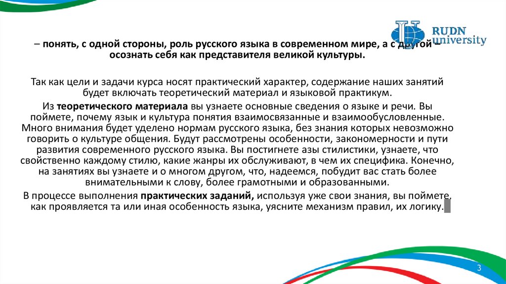 – понять, с одной стороны, роль русского языка в современном мире, а с другой –осознать себя как представителя великой культуры.
