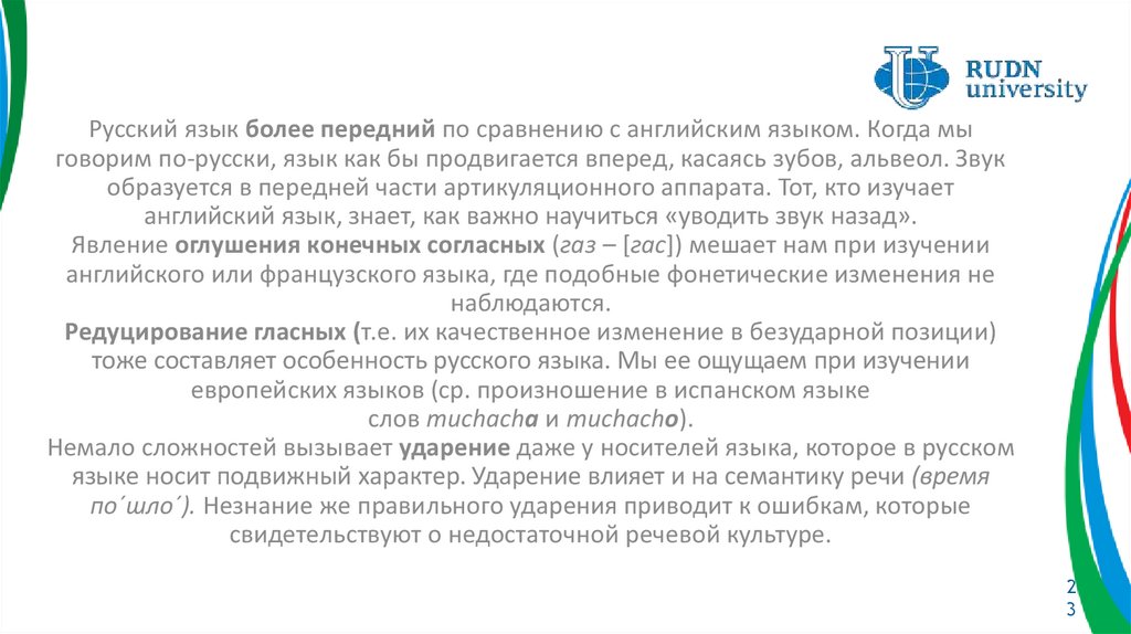 носителей языка (ударение, редукция, грамматические формы глаголов,