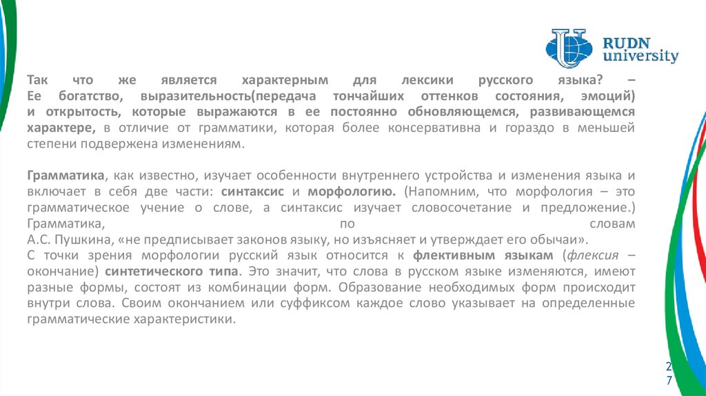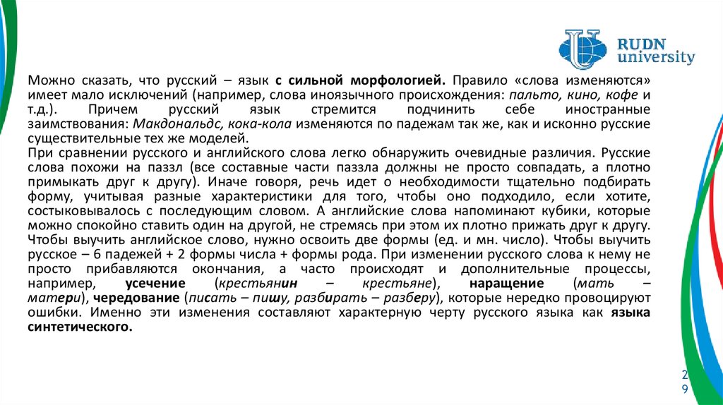 языка. Так как русский язык – это язык с сильной морфологией, правила всегда