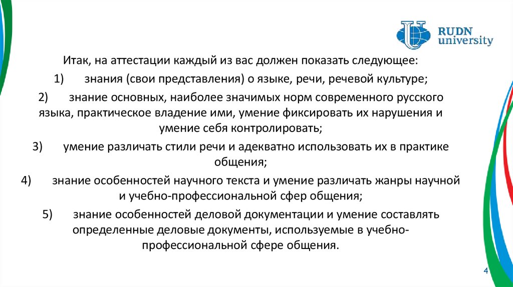 Итак, на аттестации каждый из вас должен показать следующее:1)