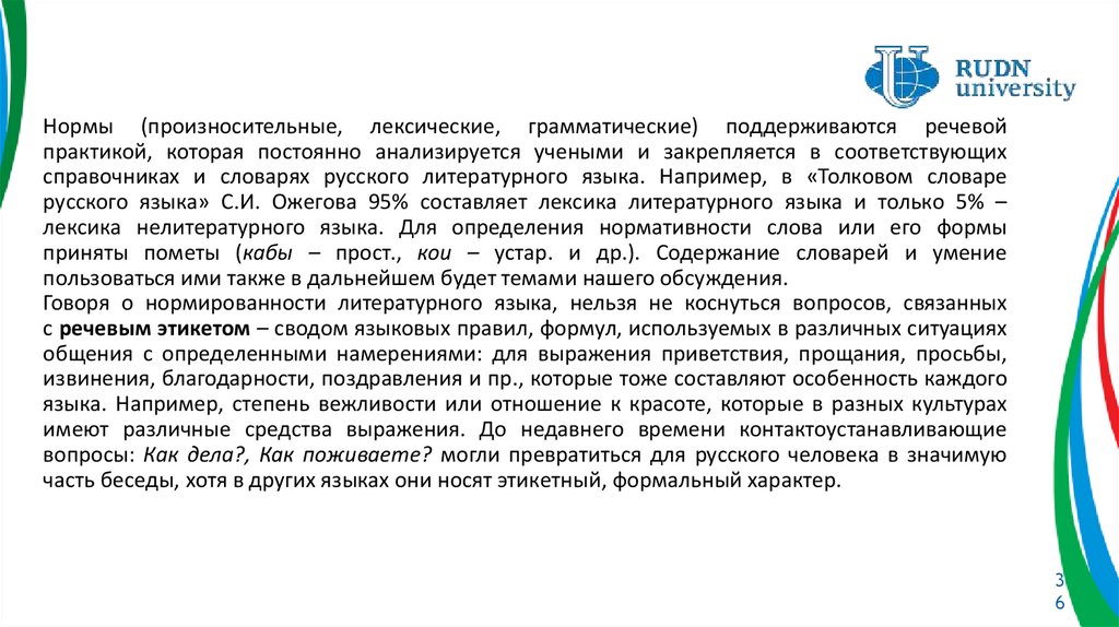 русского языка» С.И. Ожегова 95% составляет лексика литературного языка и только 5% –