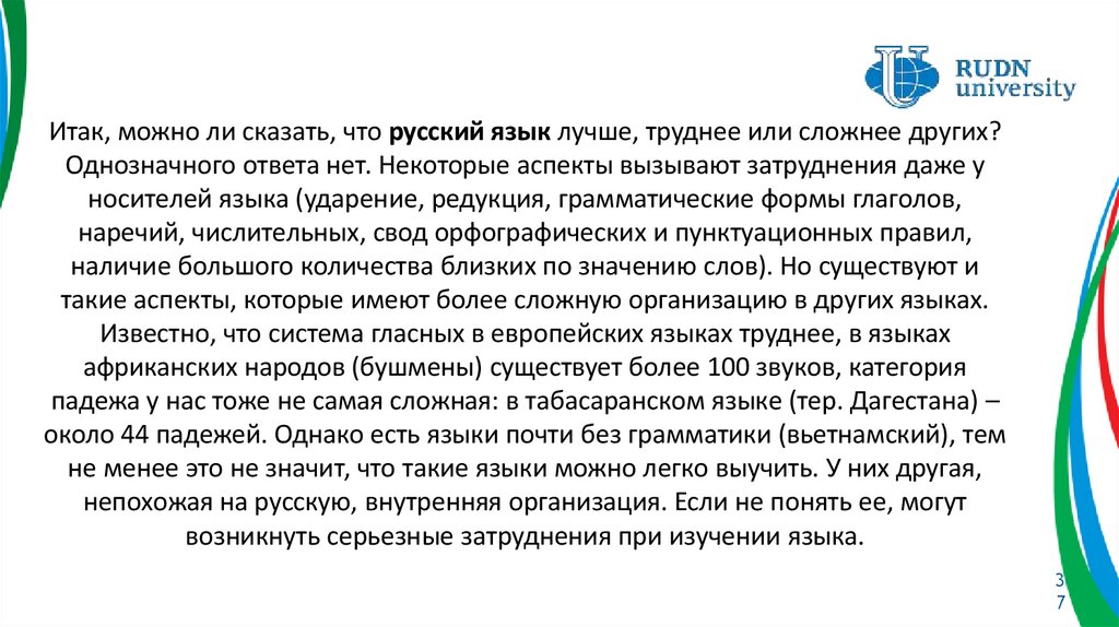 Итак, можно ли сказать, что русский язык лучше, труднее или сложнее других?Однозначного ответа нет. Некоторые аспекты вызывают затруднения даже у