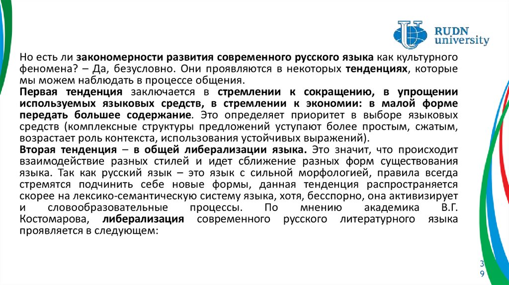 Но есть ли закономерности развития современного русского языка как культурногофеномена? – Да, безусловно. Они проявляются в некоторых тенденциях, которые