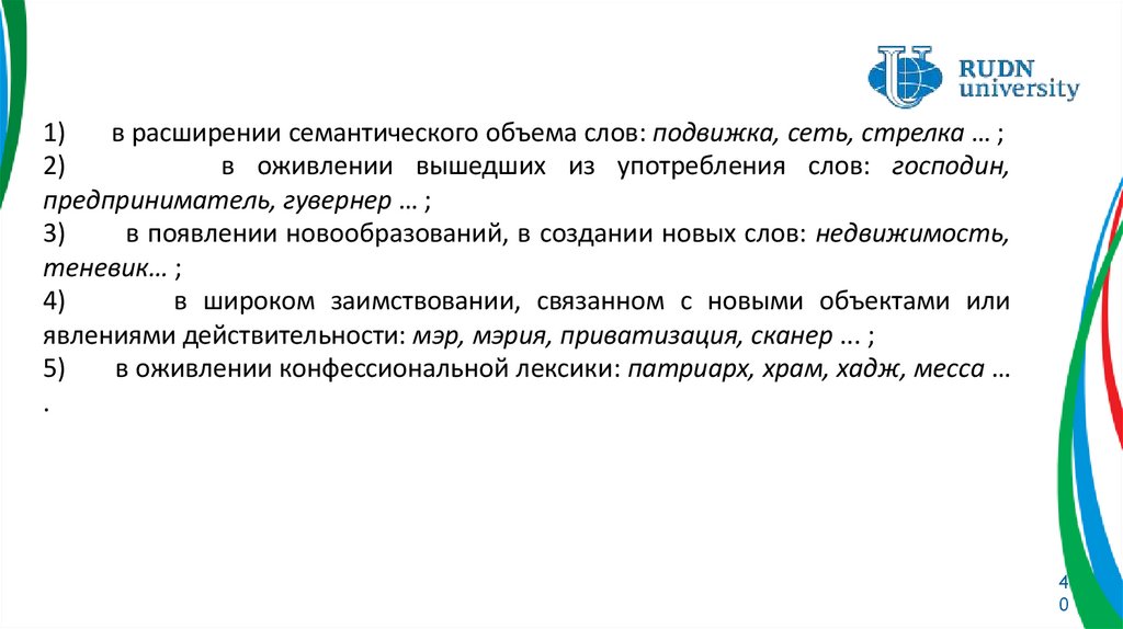 явлениями действительности: мэр, мэрия, приватизация, сканер ... ;