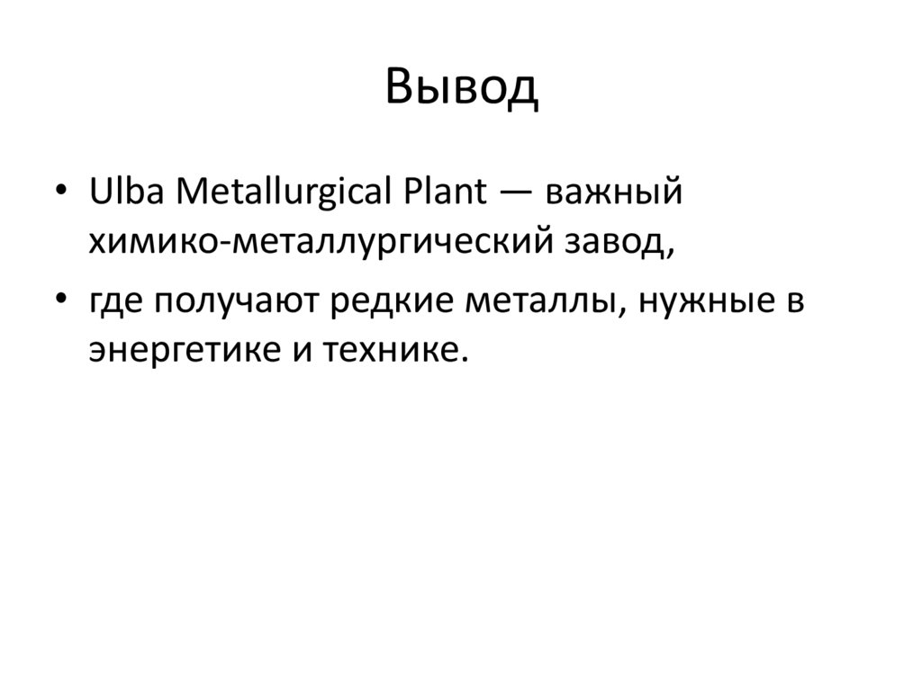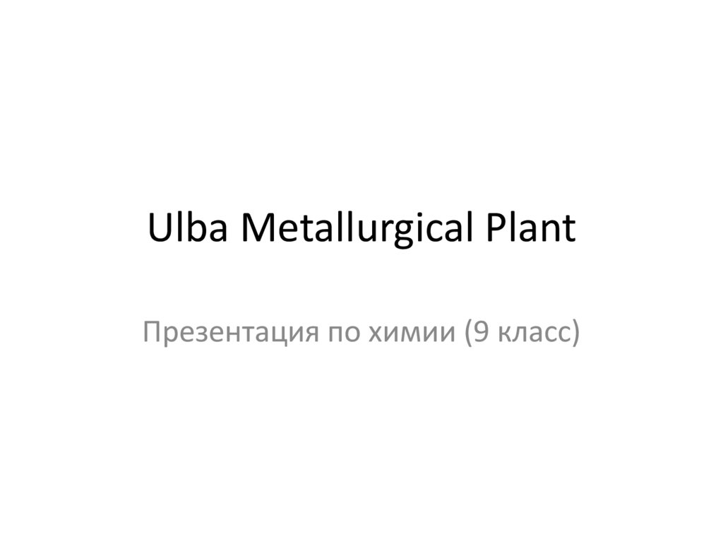 Ulba Metallurgical PlantПрезентация по химии (9 класс)