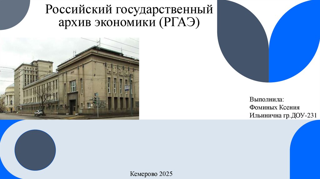 Российский государственный архивэкономики (РГАЭ) в настоящее время