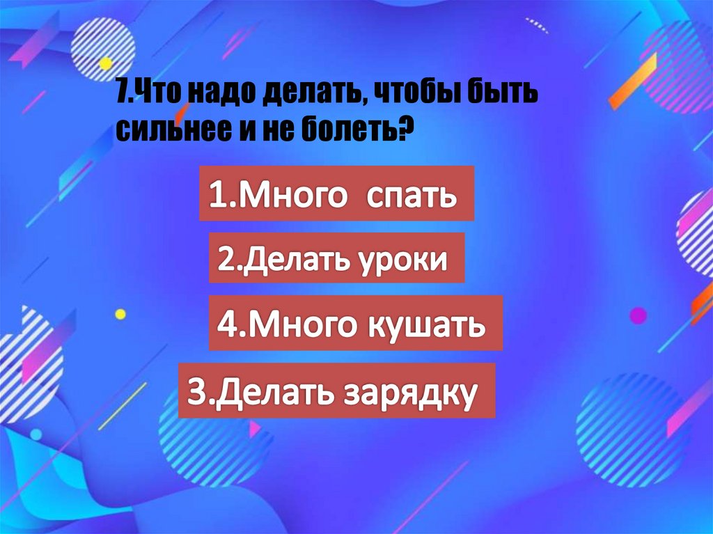 7.Что надо делать, чтобы бытьсильнее и не болеть?
