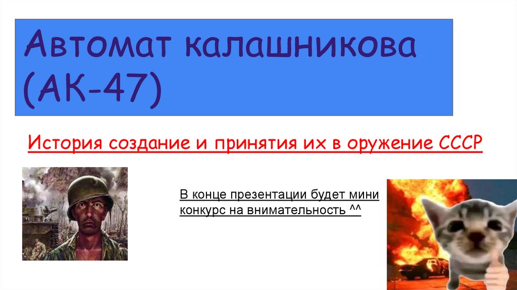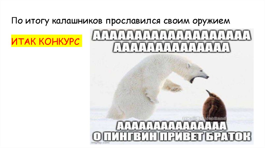 По итогу калашников прославился своим оружиемИТАК КОНКУРС