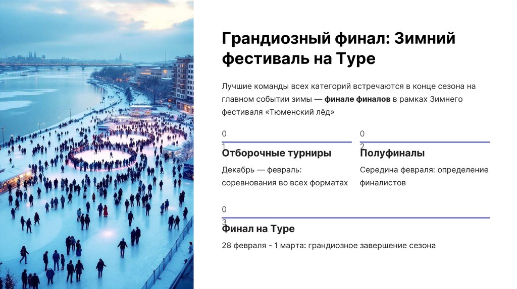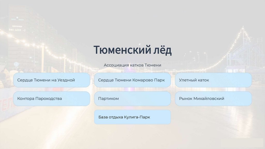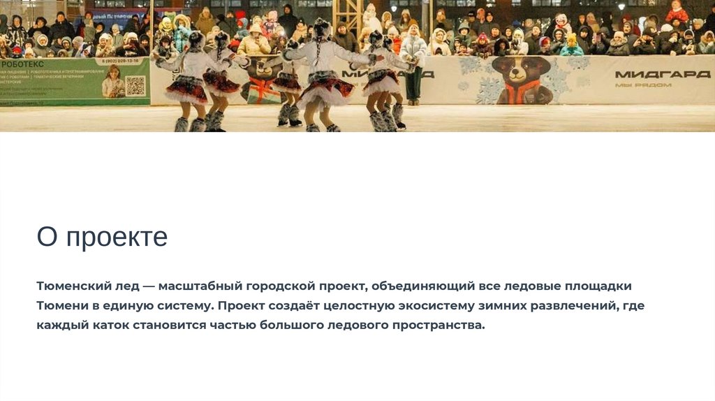 О проектеТюменский лед — масштабный городской проект, объединяющий все ледовые площадки