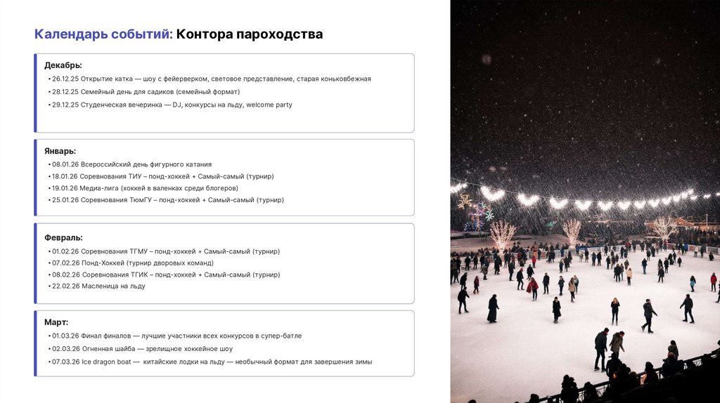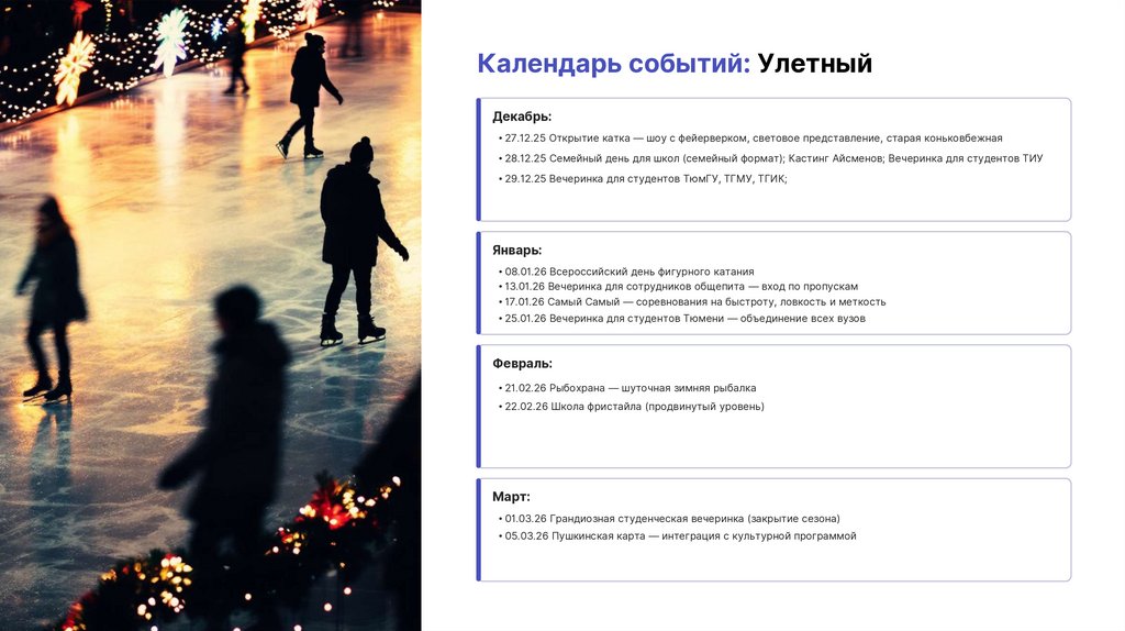 • 28.12.25 Семейный день для школ (семейный формат); Кастинг Айсменов; Вечеринка для студентов ТИУ