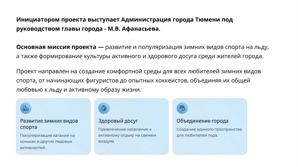 Основная миссия проекта — развитие и популяризация зимних видов спорта на льду,
