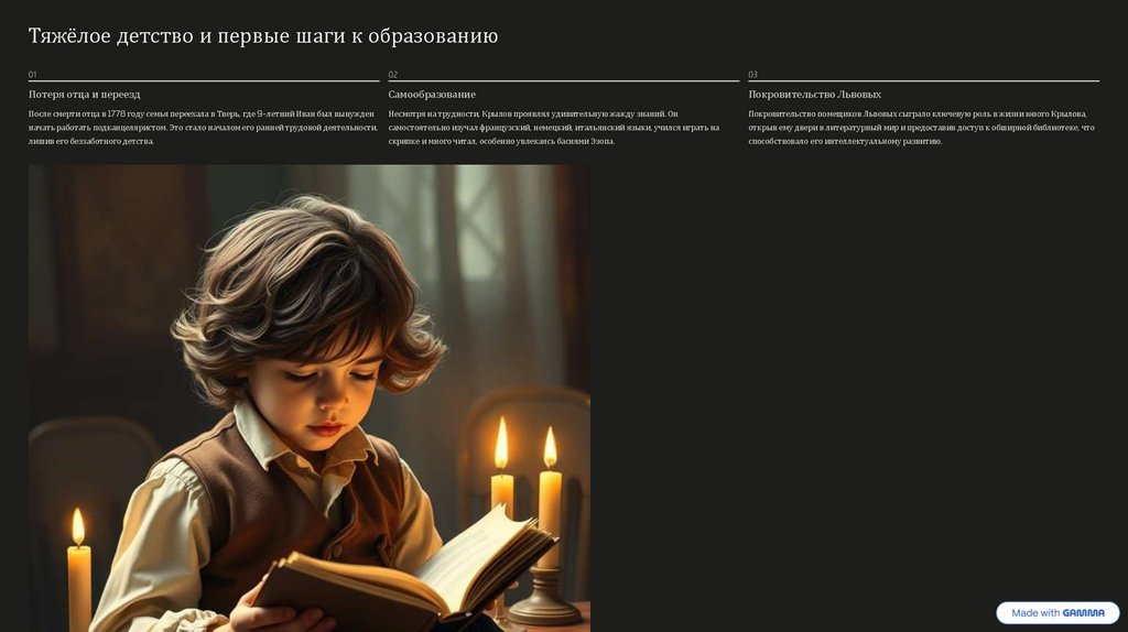 скрипке и много читал, особенно увлекаясь баснями Эзопа.