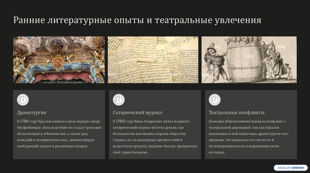 Ранние литературные опыты и театральные увлеченияДраматургия
