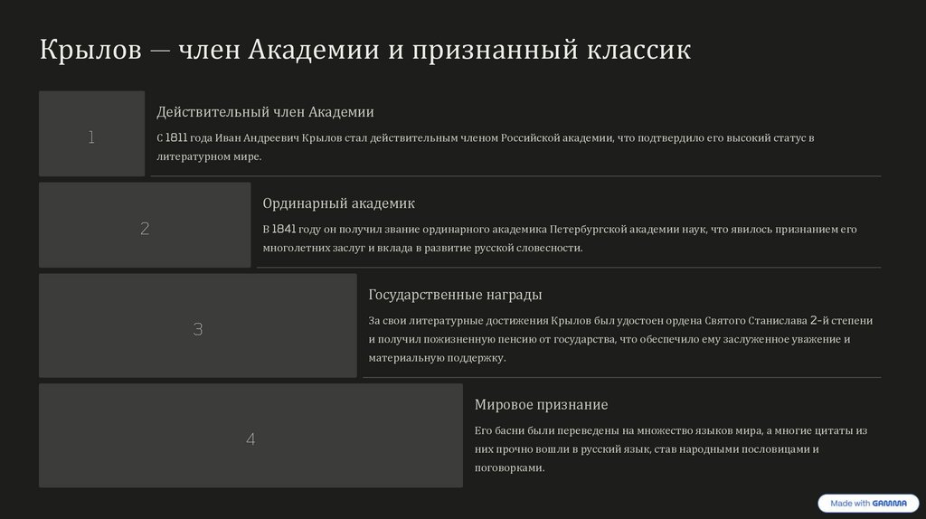 С 1811 года Иван Андреевич Крылов стал действительным членом Российской академии, что подтвердило его высокий статус в