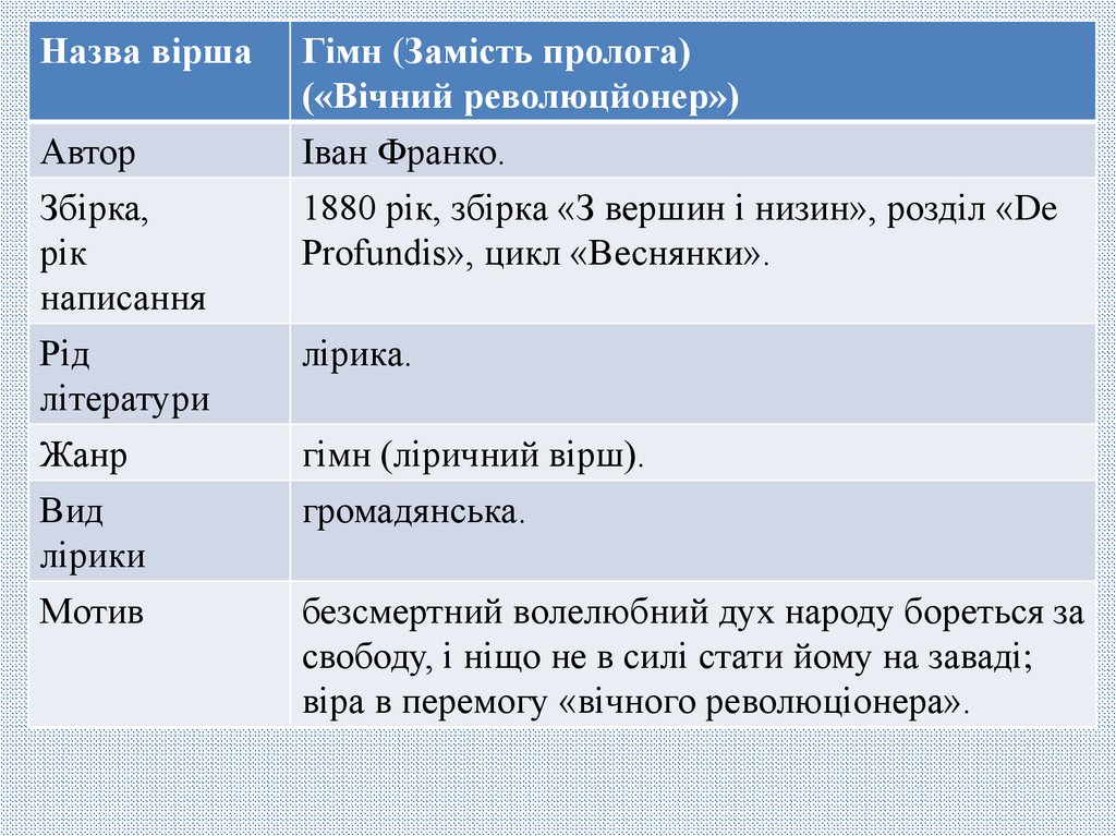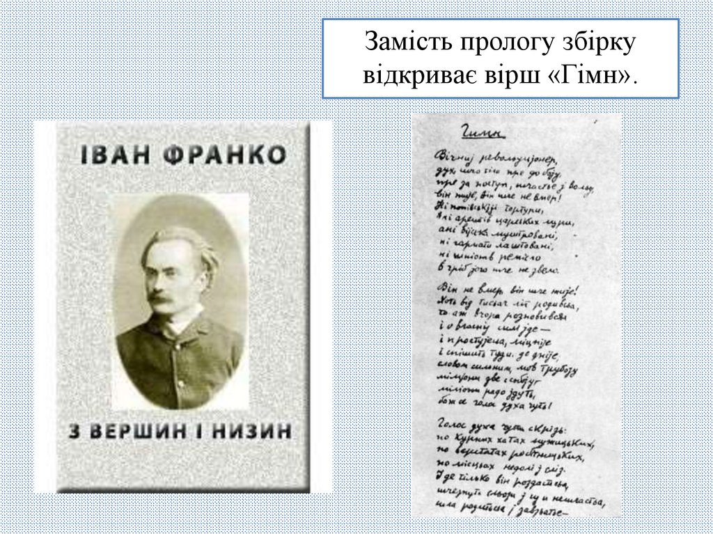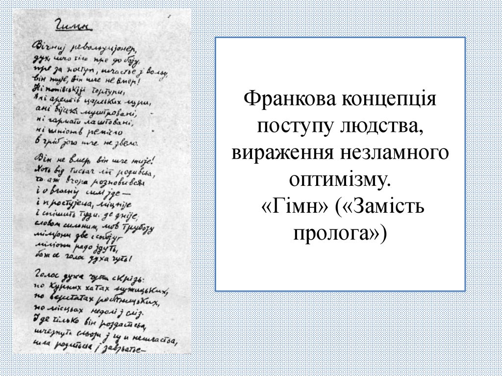1. Франкова концепція поступу людства, вираження незламного оптимізму. «Гімн» («Замість пролога»)