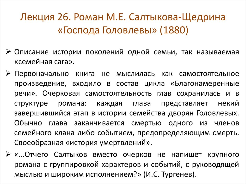1. Лекция 26. Роман М.Е. Салтыкова-Щедрина «Господа Головлевы» (1880)