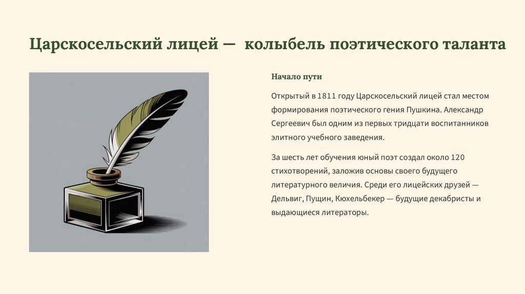 Царскосельский лицей — колыбель поэтического талантаНачало пути