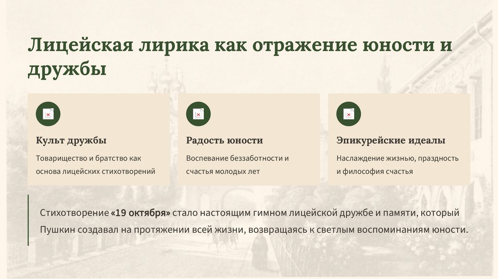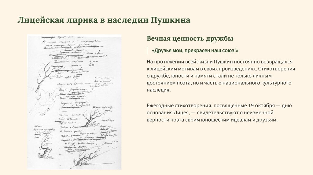 Лицейская лирика в наследии ПушкинаВечная ценность дружбы