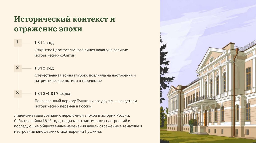 Лицейские годы совпали с переломной эпохой в истории России.