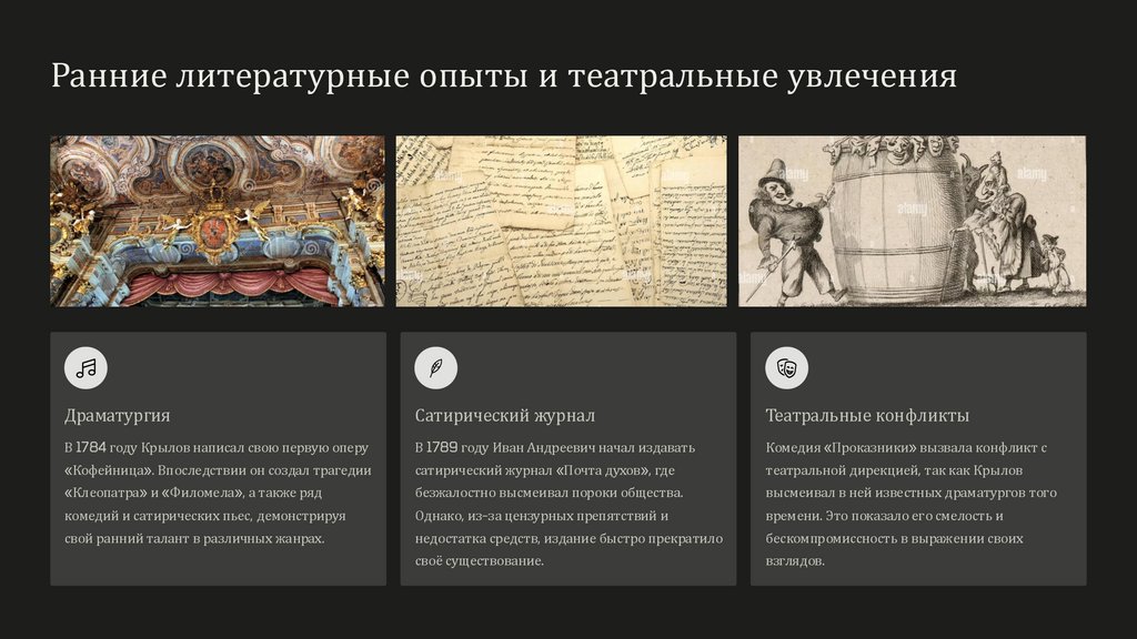 Ранние литературные опыты и театральные увлеченияДраматургия