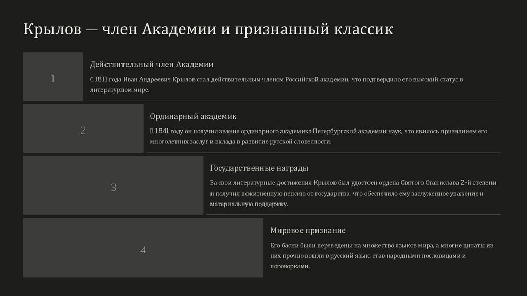 С 1811 года Иван Андреевич Крылов стал действительным членом Российской академии, что подтвердило его высокий статус в