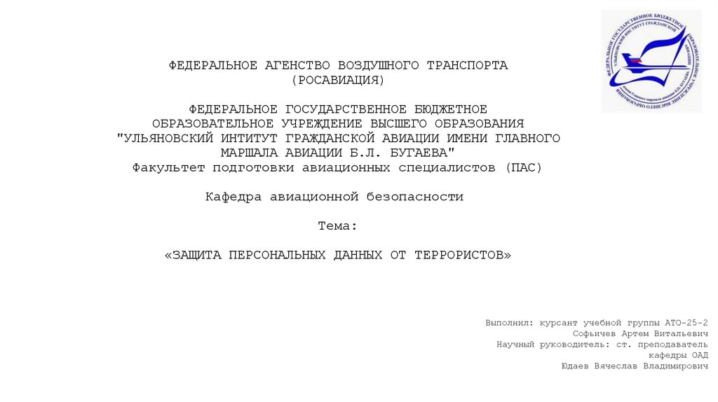 "УЛЬЯНОВСКИЙ ИНТИТУТ ГРАЖДАНСКОЙ АВИАЦИИ ИМЕНИ ГЛАВНОГО