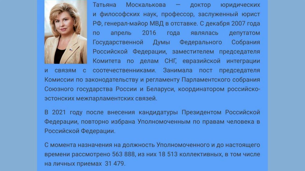 Должность Уполномоченного по правам человека в Россииучреждается в целях обеспечения гарантий государственной