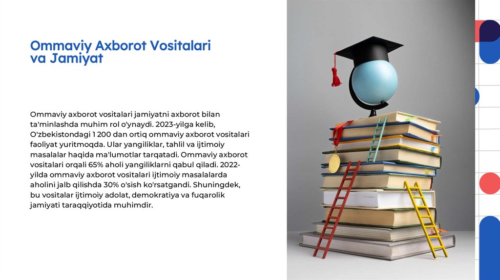 to'g'riligini ta'minlashga qaratilgan. 2022yilda O'zbekistonda 75% axborot vositalari