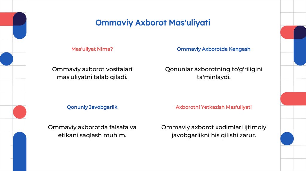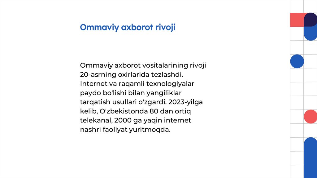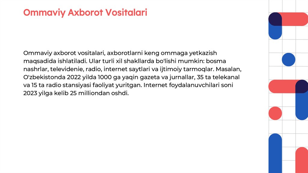 masalalar haqida ma'lumotlar tarqatadi. Ommaviy axborot