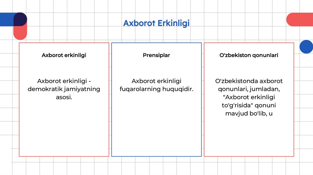 Respublikasi Konstitutsiyasiga asoslanadi. Ular axborot erkinligi va inson