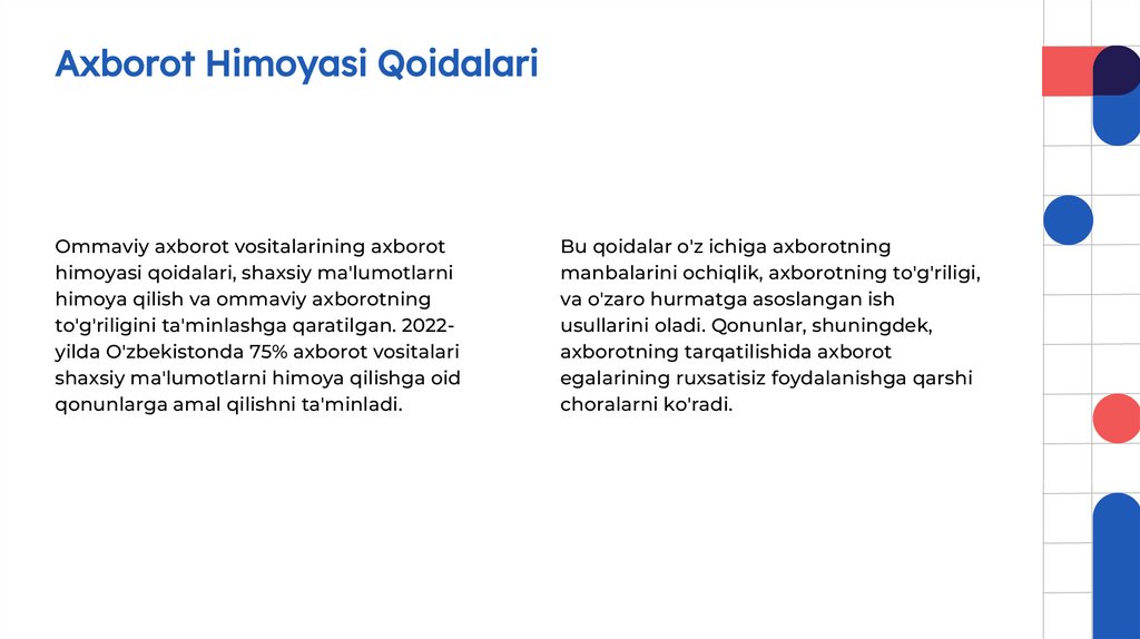 Bu qoidalar o'z ichiga axborotning