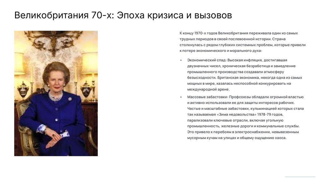 Великобритания 70-х: Эпоха кризиса и вызововК концу 1970-х годов Великобритания переживала один из самых