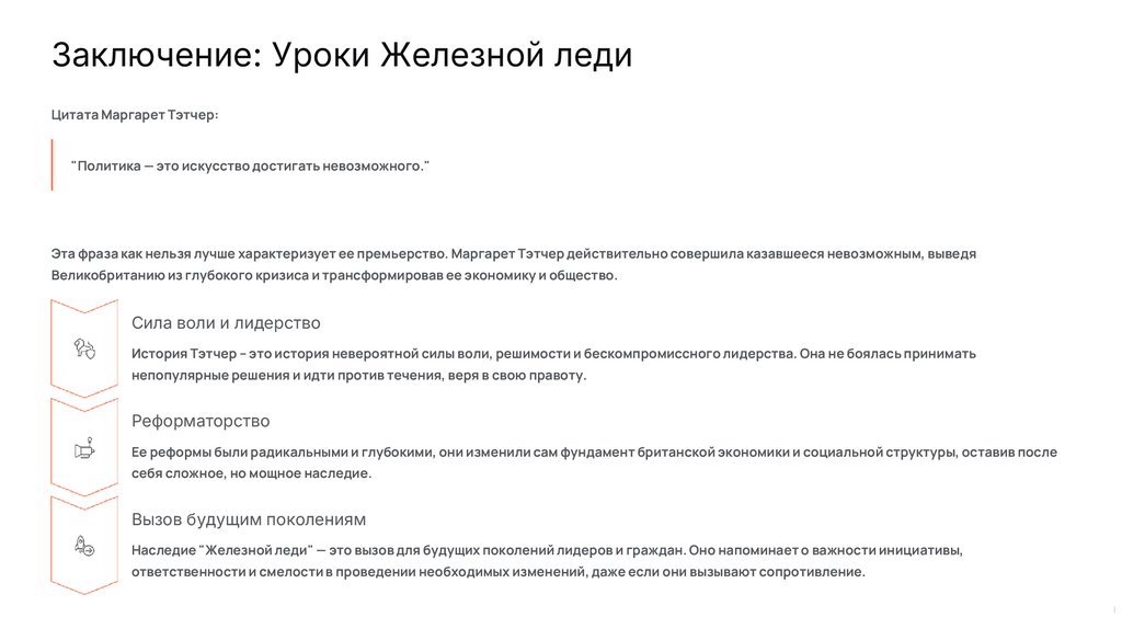 Заключение: Уроки Железной ледиЦитата Маргарет Тэтчер: