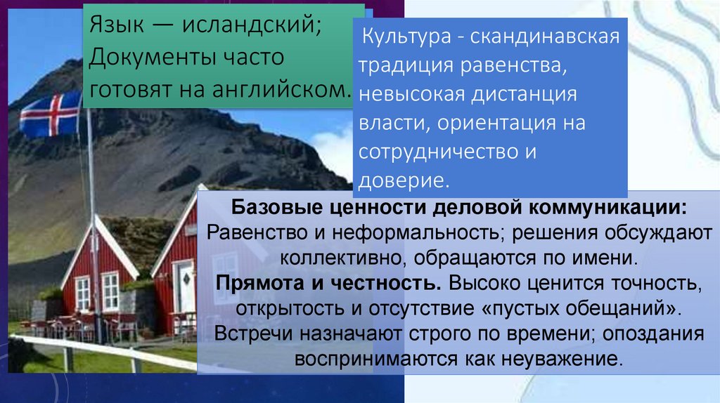 Язык — исландский; Культура - скандинавскаяДокументы часто
