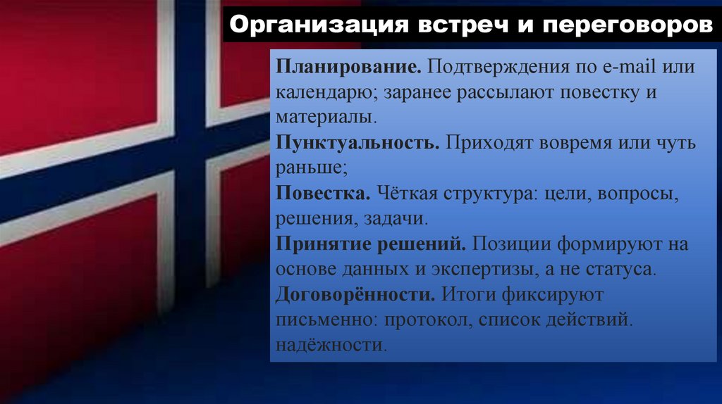Организация встреч и переговоровПланирование. Подтверждения по e-mail или
