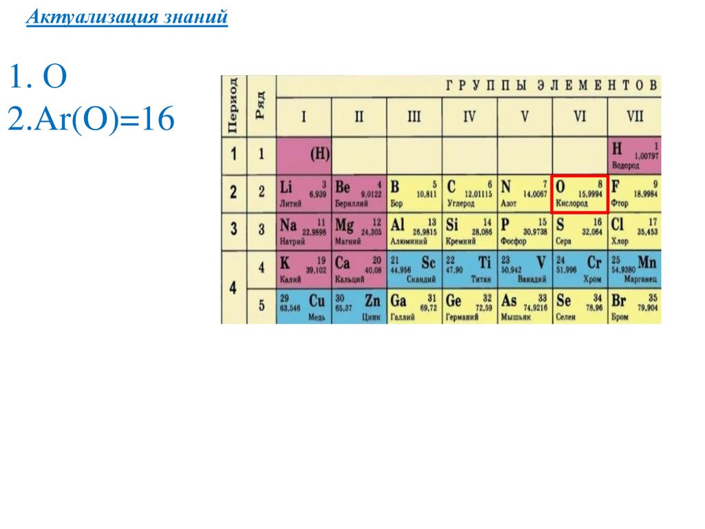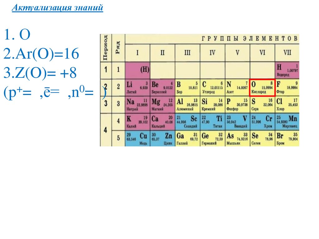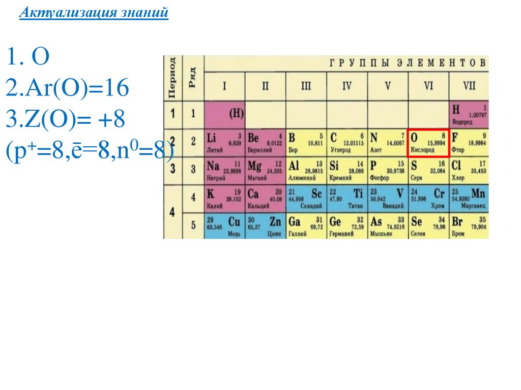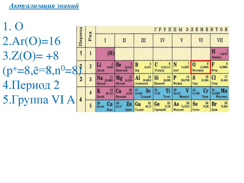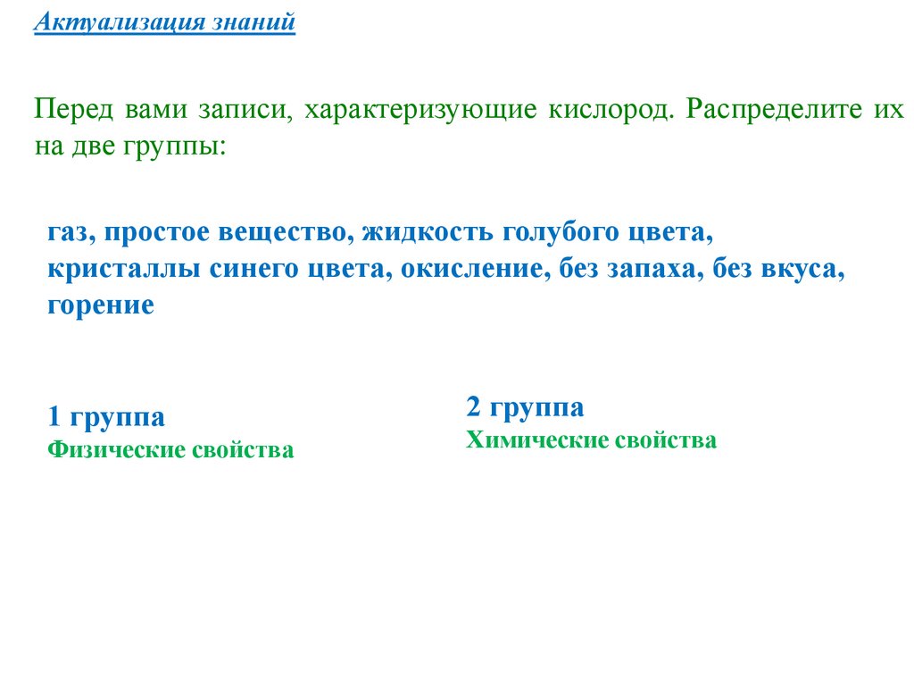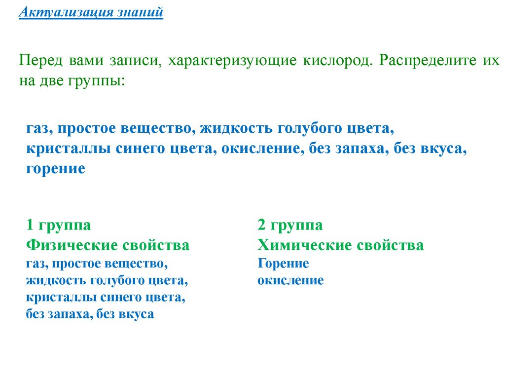 Актуализация знанийПеред вами записи, характеризующие кислород. Распределите их