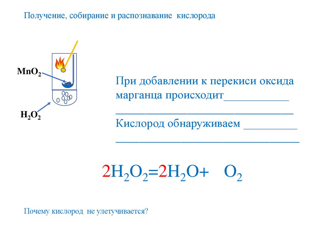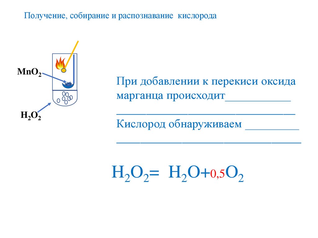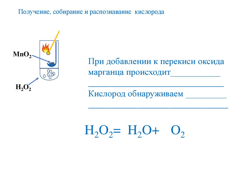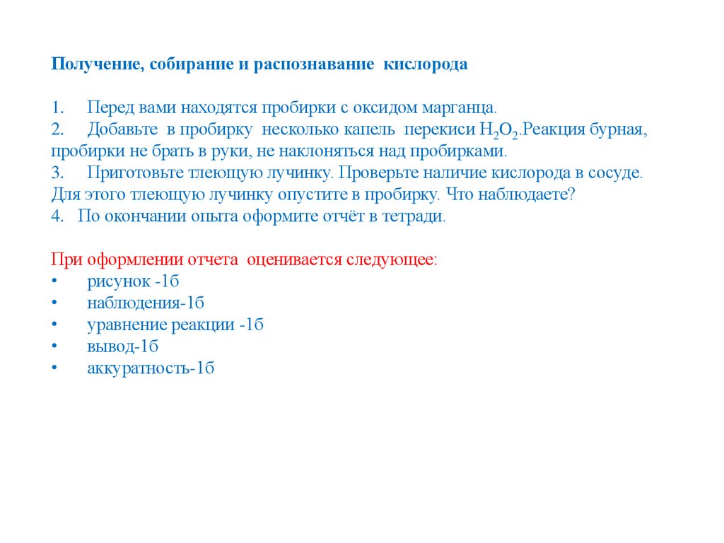 Получение, собирание и распознавание кислорода1. Перед вами находятся пробирки с оксидом марганца.