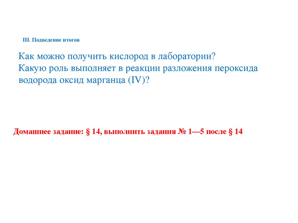 III. Подведение итоговКак можно получить кислород в лаборатории?