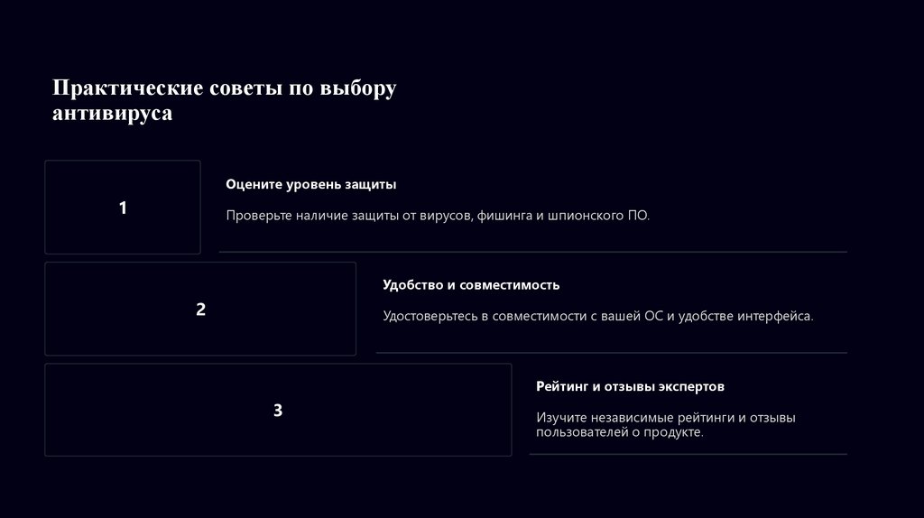 Проверьте наличие защиты от вирусов, фишинга и шпионского ПО.