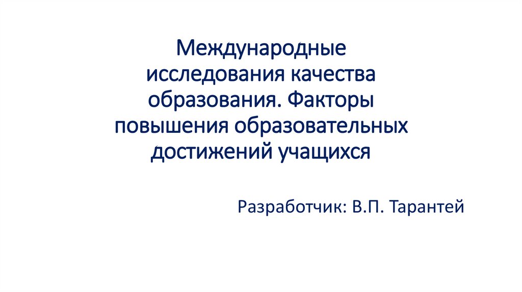 1. Международные исследования качества образования. Факторы повышения образовательных достижений учащихся