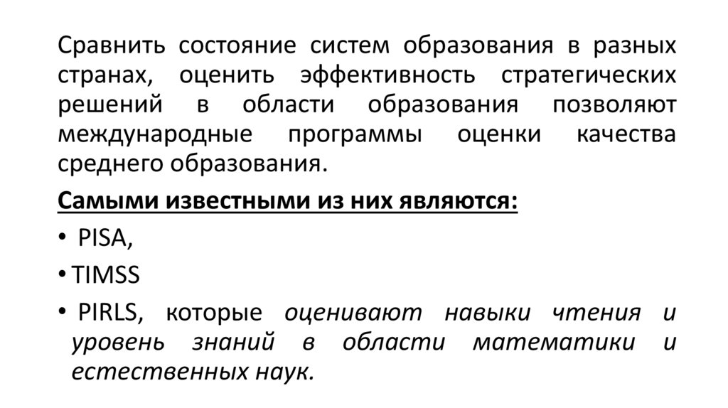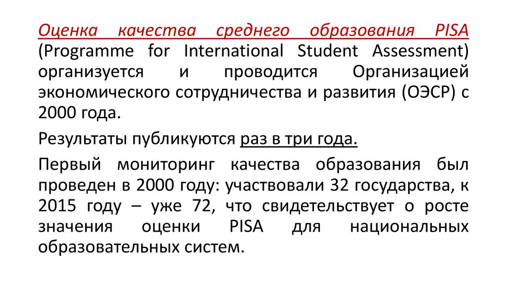 Оценка качества среднего образования PISA(Programme for International Student Assessment)