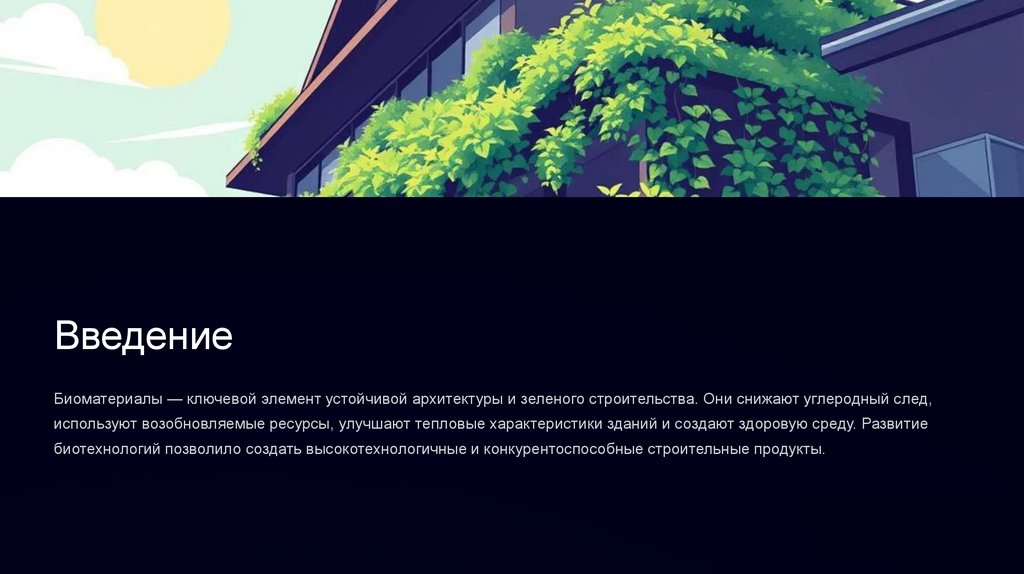 ВведениеБиоматериалы — ключевой элемент устойчивой архитектуры и зеленого строительства. Они снижают углеродный след,